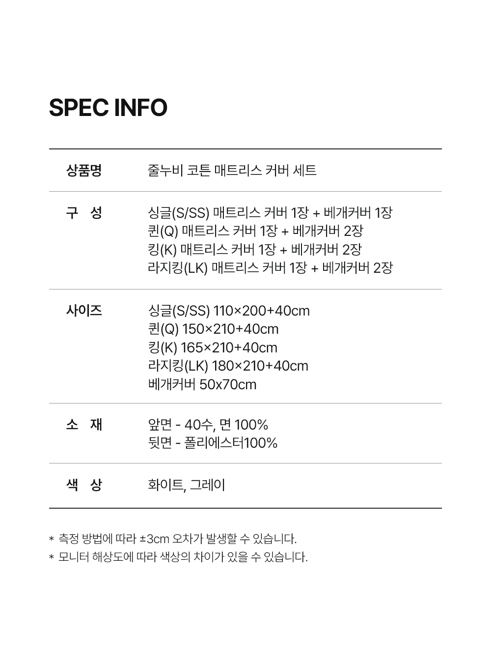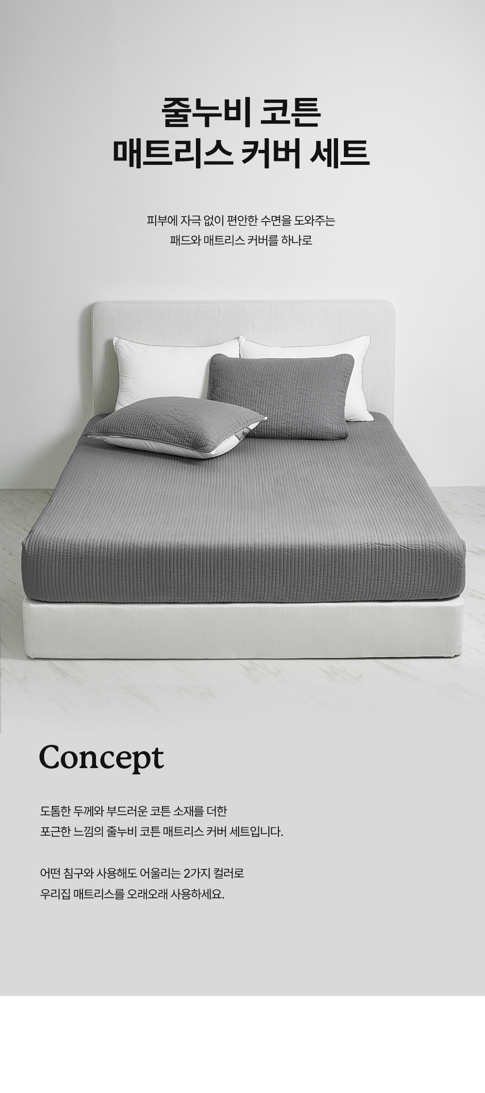 줄누비 코튼 매트리스 커버 세트