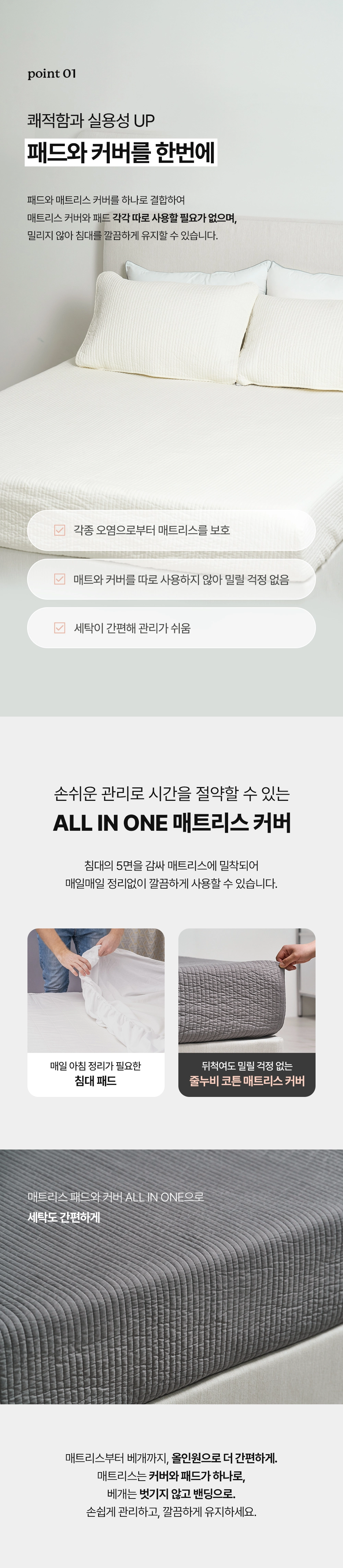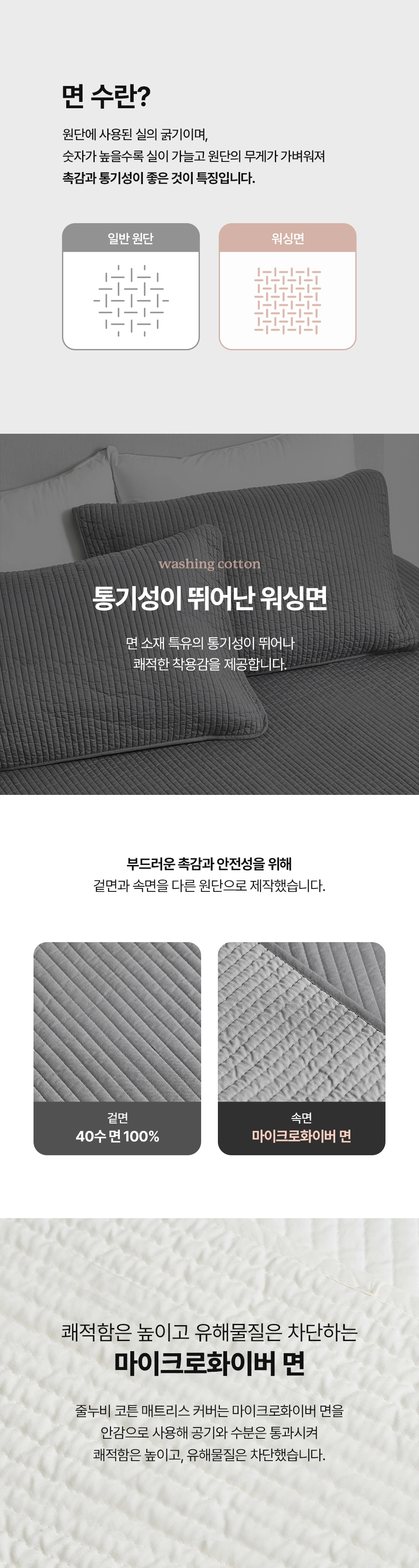 줄누비 코튼 매트리스 커버